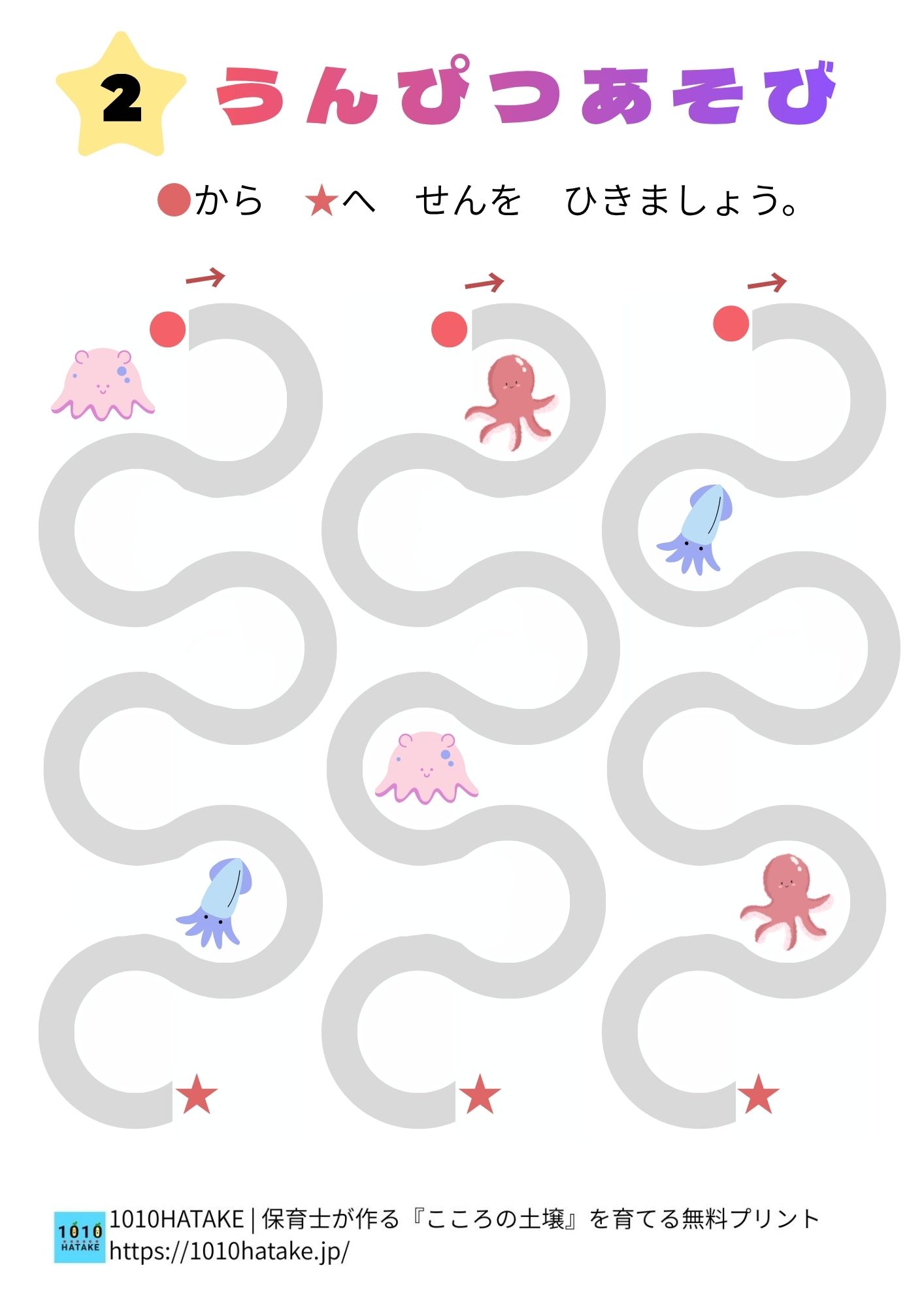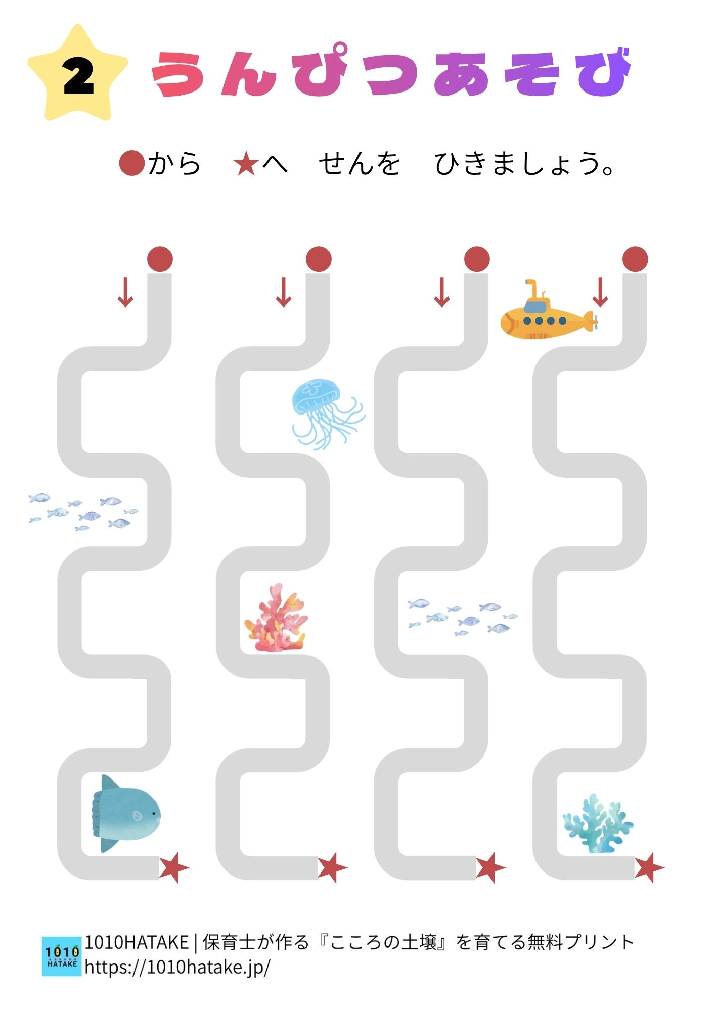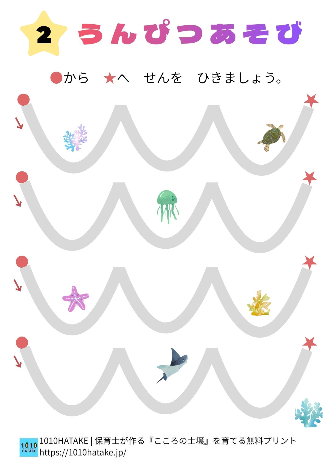 運筆遊び ステップ2(長い線をなぞろう)