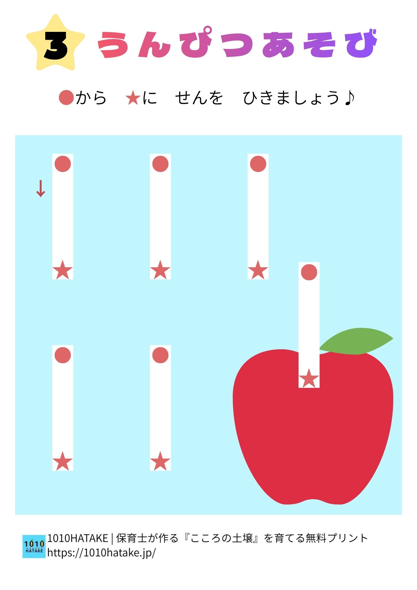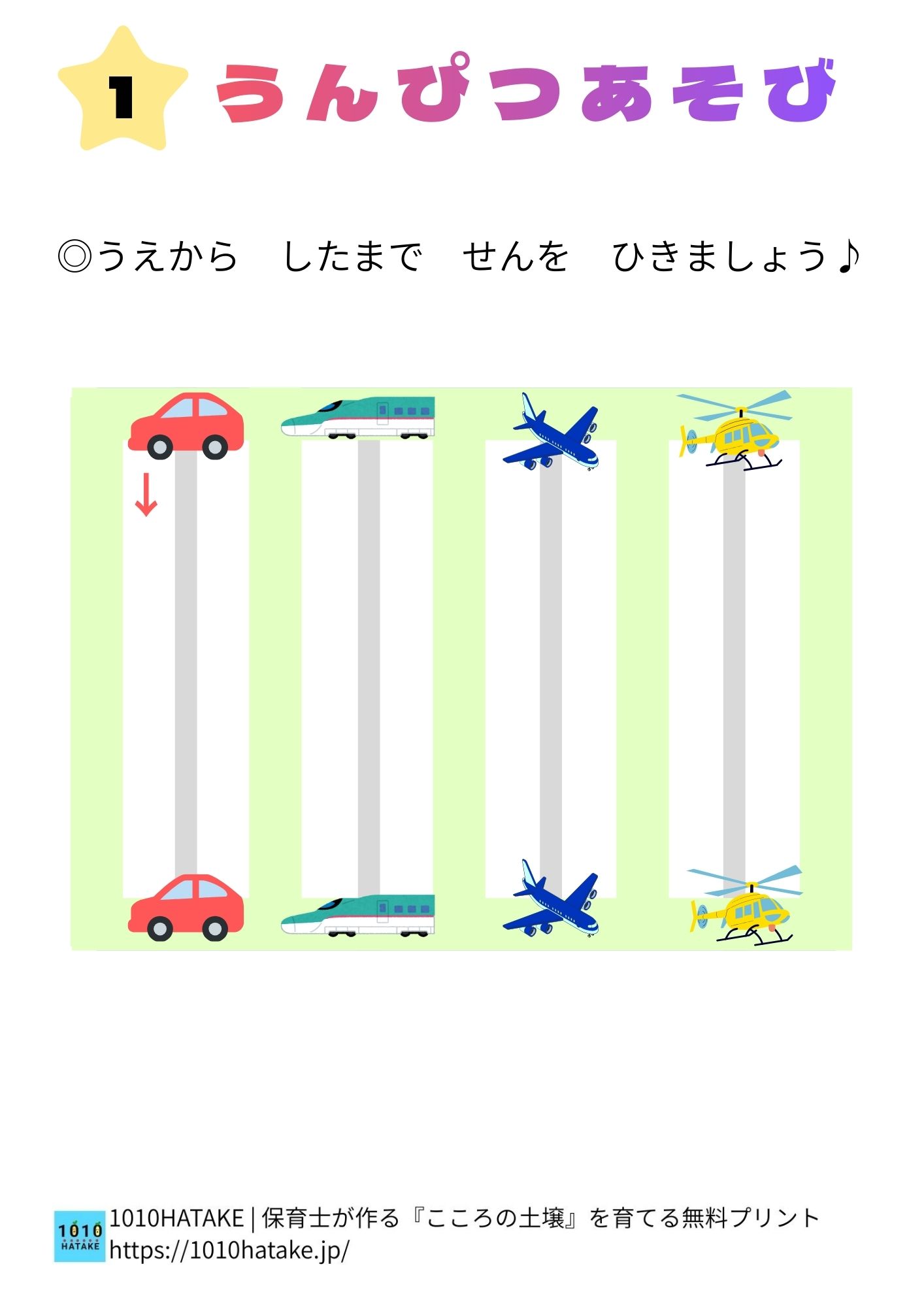 運筆とは、鉛筆やクレヨンを使って線を引く動きのことです。さまざまな線を描く経験を通して、書く力の土台を育てます。(続きの説明はこちら→運筆について)